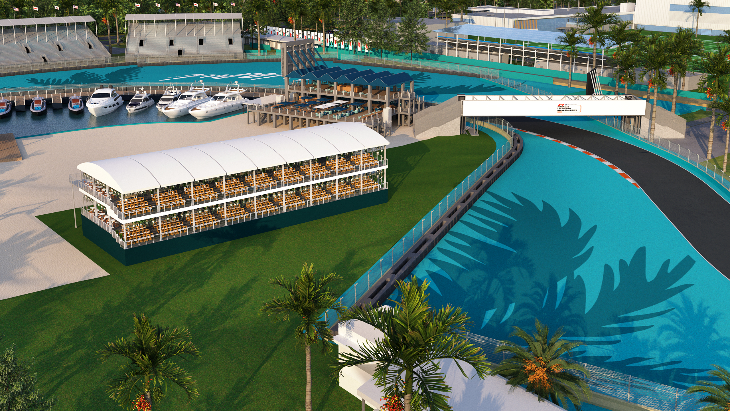 General Admission Campus Pass holders will be able to visit the MIA Marina where the stunning luxury yachts are located on the inside of Turns 6-7. Here they can dine on the deck of the Yacht Club and enjoy various food and beverage options that specialize in local South Florida cuisine. Campus Pass admission also includes access to The Fountains which is located on the south side of the stadium directly opposite the F1® podium where fans can watch the celebrations with the top three drivers of the FORMULA 1 CRYPTO.COM MIAMI GRAND PRIX 2023.